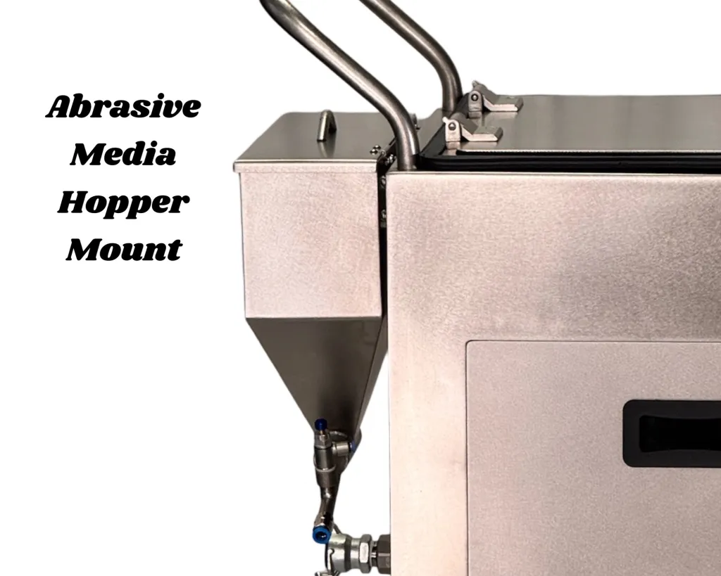 The AeroX ForgeLine™ Dual-Mode Media Blasting Hopper is engineered for high-CFM ForgeLine dry ice blasters, including the AeroX S60, P60, and E60 Pro models. This professional-grade upgrade allows operators to run ultra-fine and fine abrasive media, with or without dry ice, delivering unmatched versatility for demanding surface preparation tasks.